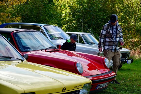 Geselliges Zusammensein unter Autofreunden und Altblechliebhabern.